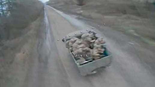 FPV-дрон снял поражение набитого военнослужащими ВСУ грузового автомобиля