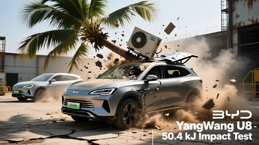 Китайский автопроизводитель BYD провел необычное испытание на прочность своего электрического внедорожника YangWang U8. В ходе теста, напоминающего сцену из кинофильма, команда инженеров сбросила на крышу автомобиля массивную королевскую пальму, вес которой приближался к двум тоннам. Эксперимент проводился трижды, причем с каждым разом высота падения увеличивалась, чтобы нарастить энергию удара. По данным компании, в ходе последней, самой жесткой попытки, эта энергия достигла 50,4 килоджоуля — это эквивалентно падению блока наружного кондиционера с крыши сорокаэтажного здания...