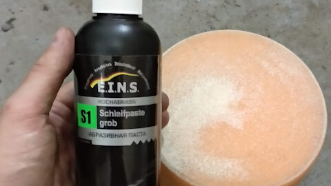 Начало моего заезда в гараж и смена лампочек ПТФ здесь. Достаем с полки полировальную машинку Интерскол УПМ-180/1300эм, заранее купленные круги и пасты и вперед... Кто-то скажет, что надо было шкуркой, потом под лак, либо заполировывать...
