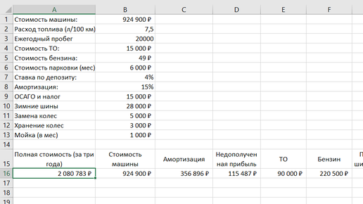 Полная стоимость машины или странная функция таблица (table) В Excel