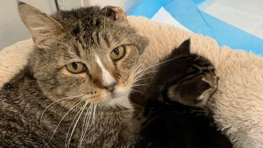 Старый кот без уха помог осиротевшему котёнку пережить потерю мамы