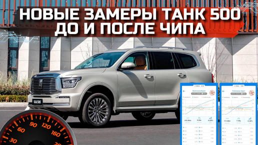 Мы уже делали замеры на Tank 500, но мы считаем, что бесконечности нет предела, и поэтому мы смогли улучшить предыдущий результат: · 0-100 км/ч в стоке 8.86 секунд, после чипа – 7.46 секунд. · 80-170 км/ч в стоке 19.07 секунд, после чипа – 13.38 секунд. Напомним, что Танк 500 – это полноразмерный внедорожник, вес которого достигает 2455–2535 кг. За бортом было 17 градусов, в машине 1 человек. Видео-замер вы можете посмотреть по ссылкам: https://rutube.ru/shorts/462a8280b66916b7885190a592a4abb2/, https://youtube...
