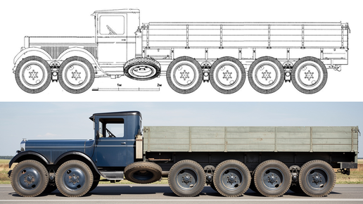 Всё началось с печенегов и половцев теории и практики высокой проходимости, а продолжилось на базе других моторов и ЗиС-36. Если не строить дурацких мегазаводов, но распределить производство типового двигателя на базе доступных передовых конструкций по имеющимся автомобильным производствам, Также можно со временем добиться и экспериментов с подкатными осями, а также с односкатной ошиновкой. По щелчку пальцев, конечно, не получится. но на базе максимально удлинённой рамы ЗиСа, большего числа осей и потенциала разработок на базе шестицилиндрового мотора Chrysler DB8 (5435 куб...