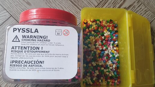 Хочу познакомить вас с очень интересной и полезной игрушкой для детей возраста 3+. Это термомозаика. Я случайно в магазине Икеа увидела набор бусин в коробке и не могла понять, что же с ними делать.