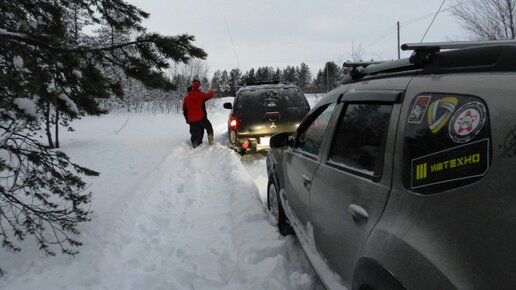 Снег и метель. Пробиваем лесную дорогу. №1. Duster, L200, Terrano New. 4х4. Offroad. Мурманск