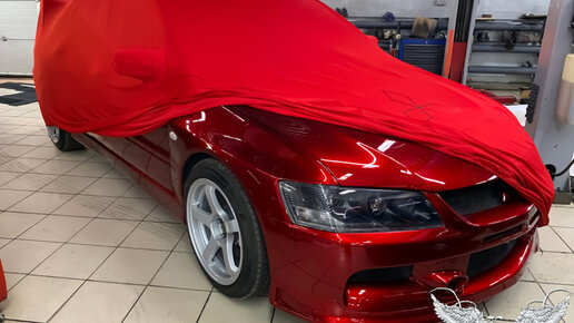 Чехол для гаражного хранения для Mitsubishi Evolution IX. Остаться незаметным не получится.