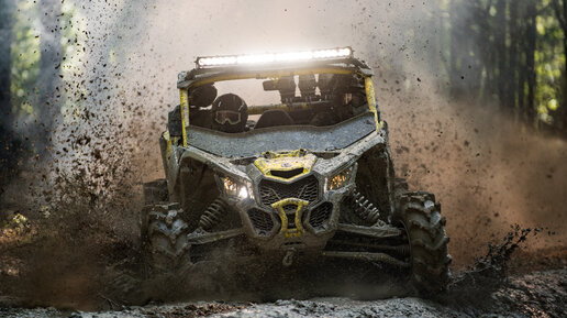 Can-Am Maverick X3 X MR Turbo стал первым серийным грязевым SSV с турбонаддувом и логично замкнул линейку комплектаций X MR, отличающихся подготовкой для преодоления водно-грязевых препятствий. Вся семья грязевой техники Can-Am в одном кадре. На заднем плане: 4-местный Maverick Max X MR и трехместный "утилитарник" Defender X MR. Средний план: квадроциклы Outlander X MR и Renegade X MR. Передний план: горячая новинка - Maverick X3 X MR Turbo R. Если цель поездки - найти серьезное водно-грязевое препятствие и штурмовать его, то лучше выбрать квадроцикл: Outlander или Renegade X MR...