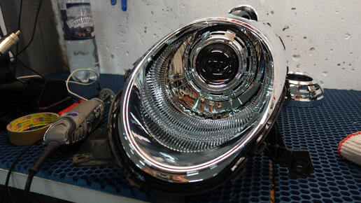 К нам в студию обратился владелец Nissan Micra (March) с жалобой на плохой свет автомобиля и неважное внешнее состояние фар в целом. Отломано одно из креплений фар, сильно затертые стекла снаружи и грязные изнутри. Было принято решение заменить лампы ближнего света на светодиодные Bi Led линзы. Стекла отполируем снаружи и изнутри. Отправляем фары в печь и приступаем к их разбору. Штатно стекла держаться на стекольном герметике, отделять их будем при помощи специальной жидкости для разбора. Фары разобраны, конструктив внутри примитивен...