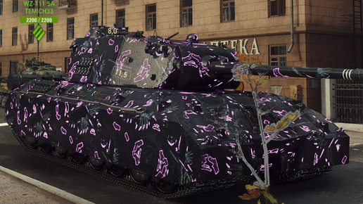 Во-первых, обратим внимание на его вооружение. Танк оснащён спаренной установкой из двух стволов с системой дозарядки, которая позволяет загрузить 6 снарядов. Урон каждого выстрела составляет 490 единиц. Перезарядка между выстрелами занимает 8 секунд, если снаряды уже были заряжены. Время на дозарядку снарядов варьируется от 11,5 до 9,6 секунд. Также танк способен вести огонь залпами: подготовка к залпу занимает 2,5 секунды. После залпа перезарядка не блокируется, и орудия сразу начинают перезаряжаться или дозаряжаться...