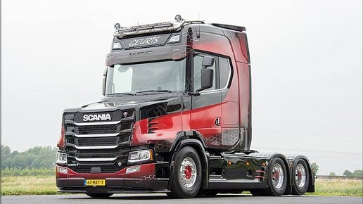 Это четвертая копия торпеда серии Scania S, построенная мастерской Vlastuin Truckopbouw. На этот раз базой стала совершенно новая Scania S650 Highline, а получателем стала голландская компания Geurts Trucks, специализирующаяся на торговле специализированными грузовиками. Вот смотрю я на эту последнюю перестройку и начинаю думать или просто я привык к этому странному переднему виду, или очень хорошо ему в темной цветовой гамме. Должен признаться, мне нравится эта машина. Особенно то что использовалась конфигурация осей 6×2...
