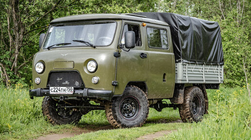 Буханка не оставляет мои мысли. Чем больше на нее смотрю, тем больше хочется из нее что-то сделать, но не монстроподобное, а фановое и позитивное. Еще один вариант - это "полбатона" или "Фермер", который своим странным внешним видом способен сорвать крышу буржуям. Этот УАЗ кажется почти стоковым, но на самом деле там все далеко не так. Автомобиль подготовлен для бездорожья, сохранив почти стандартный внешний вид. Все работы сделаны в "Тюнинг-центре 4х4" на Ильинке. Под штатным передним бампером и...