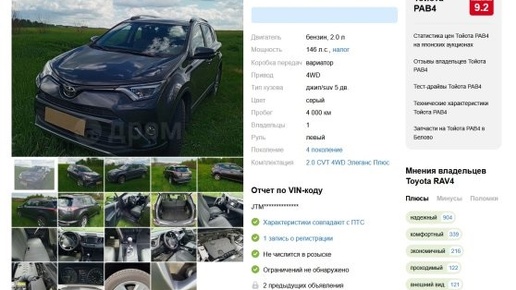 Сотрудники «Российской газеты» обнаружили в Кемеровской области весьма любопытное объявление. Речь идет о продаже японского кроссовера Toyota RAV4, который за девять лет эксплуатации прошел лишь четыре тысячи километров. Читать на сайте: Toyota RAV4 2015 года с пробегом 4000 км продают за 4,5 млн рублей Владелец оценил практически нетронутый автомобиль в 4 500 000 рублей, что само по себе является весьма внушительной суммой даже для нового экземпляра данной модели...