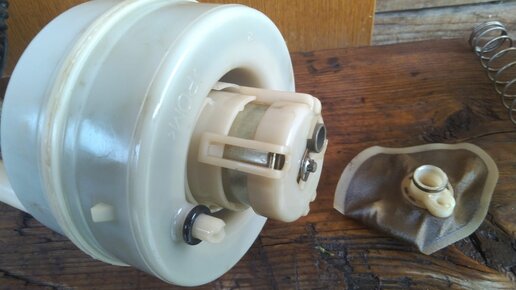 Всем привет! Тем, кто следит за каналом, знает, что недавно я чистил датчик уровня топлива и заодно хотел поменять топливный фильтр. Но оказалось, что пришел не тот фильтр. Пришлось менять. Итак, фильтр пришел, и я занялся заменой. Не стану рассказывать как достать топливный насос, посмотрите в статье про датчик. Вот так выглядит насосная станция в сборе. Основное его тело и есть фильтр. Не смотря на то, что дилеры говорят о том, что фильтр рассчитан на весь период эксплуатации автомобиля, зная наш бензин и просто желая подстраховаться, фильтр все же поменяю...