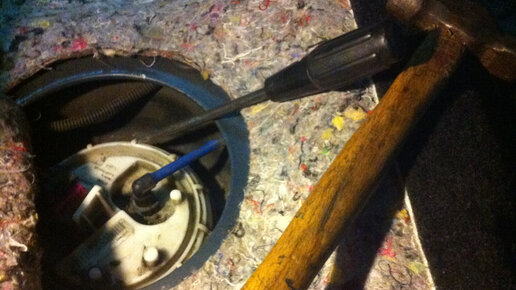 На днях у машины пропала тяга и проверив давление в рампе было решено заменить топливный фильтр и почистить сетку насоса в баке. Заглянув под днище автомобиля не был обнаружен фильтр, но это ничего страшного. Тогда начинаю лесть в бак. Насос прикручен пластиковым ободом с резьбой, который снять не повредив очень тяжело, но у меня все-же это удается. Самое интересное ждало меня внутри. Когда был вытащен насос, то я увидел, что там внутри стоит бумажный фильтр, но возможности подлезть к нему у меня нет, так как корпус где он находится запаян с завода...