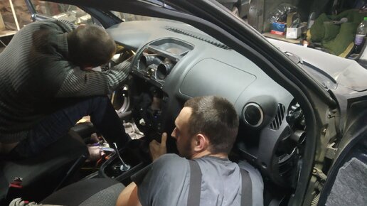 Сегодня к нам приехала Lada Granta с пробегом 20 тысяч.км., на лечение скрипов и других заложенных с завода приятных звуков. Работа для нас не новая, но обычно шумим либо под автозвук - капитально или старые иномарки, где шумка исчезла от времени. Начали с разбора дверных карт, потом сняли торпеду и взялись за работу. Знали бы Вы, как много боли в этом небольшом сочетании слов: сняли торпеду. Ужасно неудобное расположение креплений и постоянный страх сломать эти хрупкие клипсы. А пластик, что царапается даже тогда, когда его никто не трогает, вообще отдельная история...