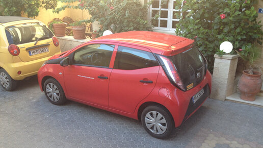 Всем привет! Хочу немного рассказать о машинке, которая меня зацепила. Малыш Toyota Aygo. Еще с момента получения ВУ я очень хотела взять на отдыхе машину в прокат, сами понимаете, это куча возможностей — едешь куда хочешь, когда хочешь и делаешь то, что хочешь, да еще и экономия на экскурсиях :) Хотелось FIAT 500 — как никак, родня моему Punto и машина с 60-летней историей (если не брать в счёт FIAT Topolina 500, а отталкиваться от FIAT Nuova 500 1957 г.в.). Но, к сожалению, на греческом острове...