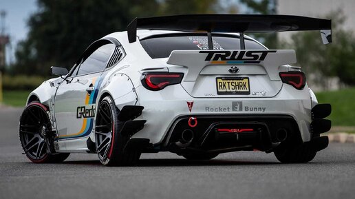 Японский Rocket Bunny всегда выделялся созданием массивных обвесов, при создании своих модификаций и в этом раз, не изменила своим традициям. Свежий пациент, который представила компания, стала модель Toyota 86, которая должна стать главной звездой на предстоящей выставке SEMA. Автомобиль получил широкоугольный комплект V2 с дополнительным добавлением углов спереди и сзади. Передний бампер также получил оснащение из комплекта светодиодов от Greddy и разделителем из углеродного волокна APR. А стандартный капюшон был полностью заменен на вентилируемый углерод...