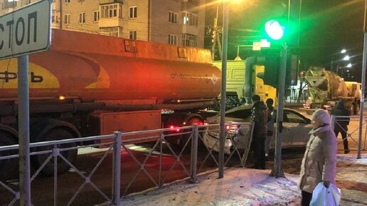 В Брянске бензовоз «Роснефти» смял Toyota Camry на Командоре