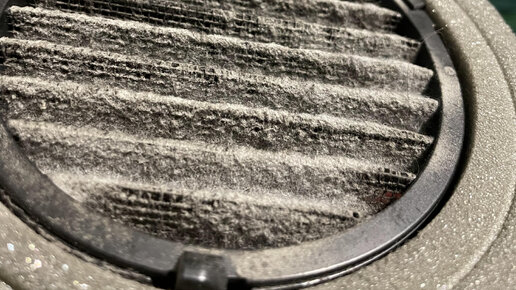 Вот такой слой пыли на фильтре вентиляции охлаждения высоковольтной батарее гибрида я обнаружил сразу после покупки автомобиля.