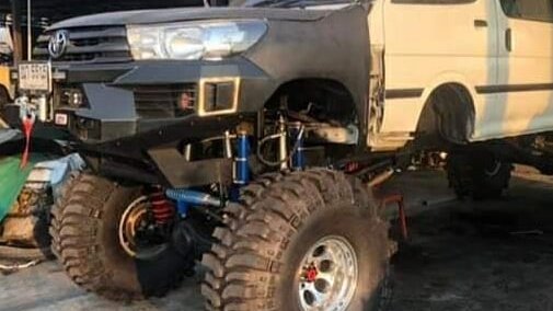 Сегодня я хочу показать вам один очень любопытный самодельный внедорожник. Судя по номерам, его сделали во Вьетнаме или Тайланде. Выглядит агрегат совершенно безумно. Перед нами симбиоз двух самых популярных моделей в Азии. Я говорю про пикап Toyota Hilux (от него взяли переднюю часть) и микроавтобусы Toyota HiAce (от него весь оставшийся кузов). Всё это водрузили на самодельную раму с лифтованной подвеской и огромными внедорожными колесами. Т.е. фактически перед нами самый настоящий монстр-трак, только с очень необычной внешностью...