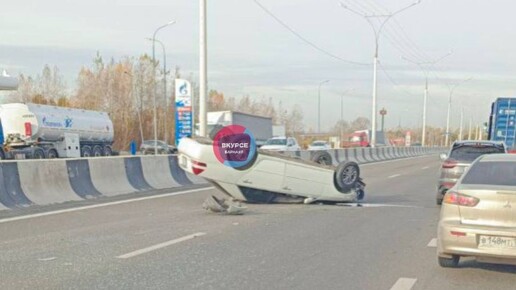 Toyota Mark II легла на крышу после ДТП на въезде в Барнаул