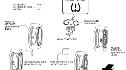 Сезон переобувания заканчивается, и некотороые владельцы Mazda огорчены, что на приборной панели загорелся индикатор неисправности системы контроля давления в шинах (Tire Pressure Monitoring System (TPMS)). Этот материал для огорченных. Mazda использует в своих автомобилях две системы контроля давления в шинах прямого и косвенного. Про косвенный контроль давления можно узнать в этой статье. Система прямого контроля, например, TPMS Mazda CX-5 (KF) использует датчики давления в шинах, и измеряет давление непосредственно в каждом колесе...