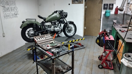 ... Продолжение. После первого сезона у меня появилось желание изменить внешность мотоцикла, к чему я приступил в конце 19 - начале 20 года. Спешить совершенно некуда, список работ не особо обширный, поэтому делалось все "с чувством, с толком, с расстановкой". Мотоцикл загнан на подъемник, частично разобран. В первую очередь, у меня были претензии к передней вилке - в качестве замены нашел оригинальную "Пайоли", от "Урал-СОЛО", на самом деле большая редкость. Подобные вилки ставились и на "Волка", но более длинные, моя же по длине в точности как старая...