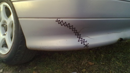 Бампер - важная деталь экстерьера авто, которая выполняет не только декоративные, но и защитные функции. Но что делать, если по какой-либо причине бампер треснул (неудачный заезд на бордюр, камень на проселочной дороге или парковка в куче снега зимой). Не обязательно сразу бежать за новым бампером, учитывая, что стоят они немало. Предлагаю три различных по трудоемкости способа починки. Способ первый "пятиминутка". Тут и объяснять ничего не надо: стягиваем трещину руками и стыки многократно заклеиваем скотчем, лучше армированным...
