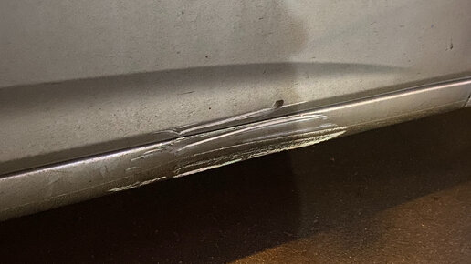 Вот с такими повреждениями порога и двери на солярисе клиент приехал к нам. Далее зачищаем до металла Используя споттер вытягиваем крыло и дверь После выравниваем поверхность с помощью шпаклевки Место...