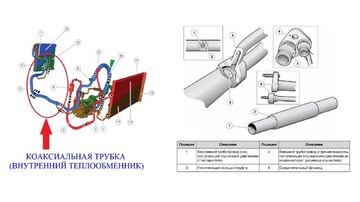 😊 Друзья, а вы знаете для чего на СОВРЕМЕННЫХ автомобилях, в системах кондиционирования используются КОАКСИАЛЬНЫЕ 😲 трубопроводы, т.е. один трубопровод находится внутри другого (внутренние теплообменники)? (См. картинку😉)! По наружной трубке протекает горячий жидкий хладагент под высоким давлением из конденсатора/ресивера-осушителя в ИСПАРИТЕЛЬ через термо-регулирующий вентиль (ТРВ), а по внутренней протекает холодный газ под низким давлением из испарителя (опять же через ТРВ) в КОМПРЕССОР.