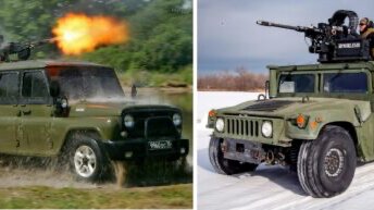 Незадолго до гибели военкор Владлен Татарский полушутя посетовал, что бронеавтомобиль «Тигр» создан, видимо, для передвижения в глубоком тылу. Как иначе объяснить, что на передовой сплошь «Уралы», «КамАЗы» и УАЗы всех мастей: «Буханка», «Патриот», «Хантер»… Именно УАЗ был основной рабочей лошадкой советской армии и, как видим, не потерял своей важности в армии российской. Поэтому сравним его (несколько вопреки логике — настолько они разные) с самым популярным вездеходом ВС США — Хаммером. Прародителем всех советских и российских военных внедорожников можно считать знаменитый «Козлик» — ГАЗ-64...