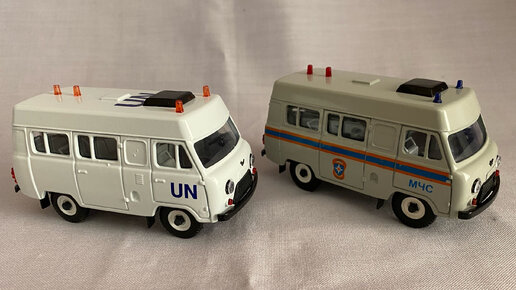 Доброго времени суток, уважаемые подписчики и гости канала! Сегодня я бы хотел показать вам две масштабные копии автомобилей Уаз, которые заслуживают отдельного внимания. Экземпляры, демонстрирующиеся в этой статье, обладают рядом особенностей: Итак, предметом изучения являются две "буханки" с индексом 3962, выпущенные примерно 10 лет назад: в раскраске ООН и МЧС. Первым Уазом с высокой крышей для Тантала стал автомобиль скорой медицинской помощи "Тамро". Лишь спустя почти 15 лет на этой базе завод начнет делать прочие модификации (как эти МЧС и ООН)...