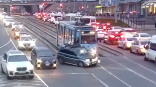 В центре Улан-Удэ Mitsubishi Pajero угодил под трамвай