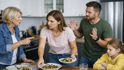 Я готовлю для своей семьи, а не по меню твоей мамы! — сказала жена, убирая со стола