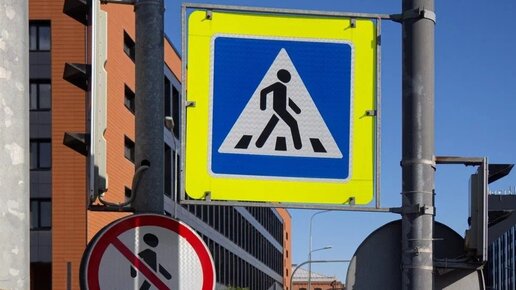 Дорожный знак едва не упал на девушку у пешеходного перехода на Театральной площади