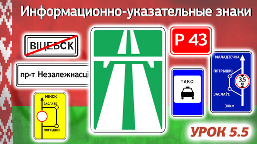 Курс ПДД РБ 2023: Правила Дорожного Движения Республики Беларусь - Урок 5.5 Информационно-указательные знаки (Приложение 2 Параграф 5 ПДДРБ)
