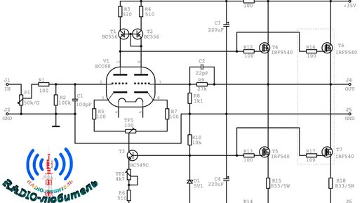 Всем здравствуйте. Предлагается схема на обсуждение гибридного усилителя, скажем так своеобразного. У нас в течение многих лет усилители были только ламповыми, а затем — только на транзисторах. Вот опять...