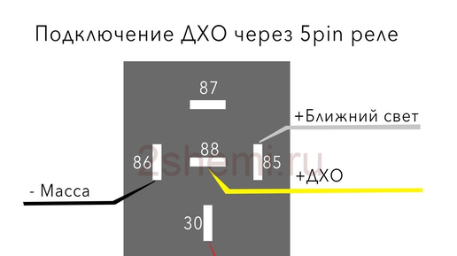 Схема подключения ДХО (DRL) через контактное реле в авто