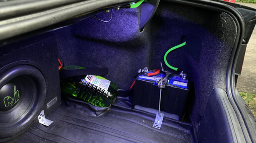 Всем привет! Решил поделиться хорошей новостью. Как и планировал поставил вторую АКБ, один в штатном месте под капотом (60A), второй в багажник (45A). Зимой теперь точно проблем не будет. Силовой провод взял от саба 4Ga, запихнул в змеиную кожу, провёл как и все через заглушку идущую в салон. Тянул по правой стороне, там показалось проще. Поставил один предохранитель на силовой кабель 80А на штатный акум и на второй в багажнике, всё как положенно 15-30см от клеммы...