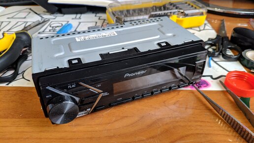 Имеется магнитола Pioneer MVH-100ub Решил установить блютуз модуль. Чтобы сильно не заморачиваться, подключил питание от USB, а звук чтоб шел в режиме aux Итак, разбираем корпус, контакты подписаны на плате, разберется любой, кто хоть чуть-чуть знает английский...