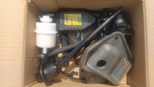 Как же я уже устал ездить по дворам без ГУРа. По трассе еще куда не шло, а вот как заезжаешь в узкие дворы, то начинается веселье. Тут я решил поискать установочные комплекты ГУРа и оказалось, что они продаются только в Нижнем Новгороде, хотя и объявления висят как Москва, но доставка идет с Нижнего. Найдя подходящий мне комплект, я связался с продавцом и выяснилось, что у них машина постоянно ходит с Нижнего до Москвы и с ней они могут отправить мой комплект. Договорились мы на следующий день. И вот пришла моя посылочка, которую я так сильно хотел, но всегда жаба душила...