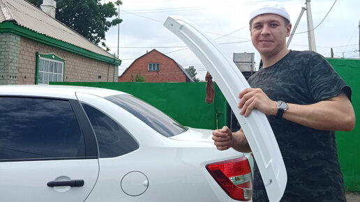 Всем привет! Решил я поставить лип-спойлер на свою Гранту. Выбрал именно ЛИП, т.к. не хотелось сверлить кузов, машина всё ещё на гарантии, да и с этической точки зрения жалко портить кузов на новой машине, которой нет ещё и года. Спойлер поставлялся на заказ из Тольятти, местные мастера покрасили под цвет кузова, ждал совсем не долго. Спойлер заказывал весной и клеить его при минусовой температуре при отсутствии тёплого гаража посчитал не логичным. Решено было отложить работу до некоторого времени, пока не установится тёплая погода...