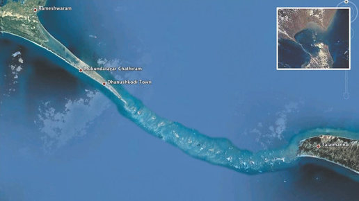 Индию с Шри-Ланкой (Цейлоном) с древнейших времен соединяет таинственная отмель, которую как мусульмане, так и индуисты считают рукотворным мостом. Сравнительно недавно индийские геологи установили, что это на самом деле искусственное сооружение уникальное по длине — 50 км! — и колоссальное по объему проведенных работ. Согласно легендам, мост строили обезьяны из войска Ханумана, а они были настоящими великанами ростом до 8 метров, вот таким исполинам было под силу создать такой невероятный мост. Таинственная отмель...