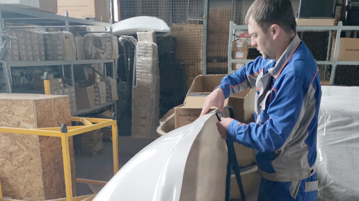 Распаковать обтекатель и положить тыльной стороной на упаковочный материал. Установить на посадочную кромку обтекателя уплотнительный резиновый кант. Открутить штатные болты Обтекатель...