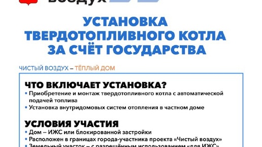 ⚡️ Если вы живете в частном секторе, то вам доступна установка экологичного твердотопливного котла за счет государства. Заявление и анкету вы сможете найти, перейдя по QR-коду либо по ссылке. Установка котлов возможна благодаря участию Ачинска в федеральном проекте «Чистый воздух»...
