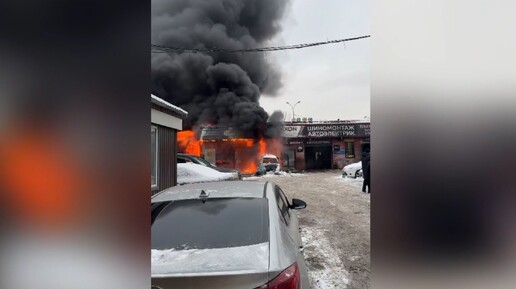 На Варшавском шоссе под Москвой загорелся автосервис