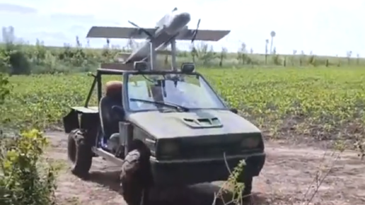 запуска российских дронов "Молния-2". Автомобиль ВАЗ-1111 производили в