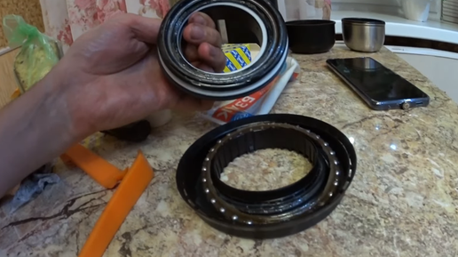 Ранее я покупал на свою Ладу Весту опорные подшипники на передние стойки. Решил их смазать. А почему? Сейчас покажу. Открою новый подшипник, вытащу его из коробки. Если покрутить его в руках, то слышно, как он шумит. Вроде оригинальный. Хочу их смазать самой простой смазкой для ШРУСа. Не обязательно такую, можно любую другую, которая подходит для этих целей. Мне всегда было интересно, сколько они туда кладут смазки. Я вскрыл подшипник. Как он вскрывается? Просто берете лопаточку и открываете. Будут маленькие щелчки...