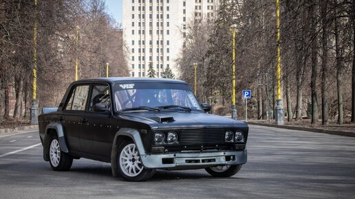 Здесь все серьезно и по правилам. Этот ВАЗ-2106 не может ездить по городским улицам — его можно транспортировать только на жесткой сцепке и использовать для участия в соревнованиях.