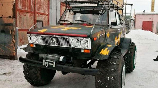 Привет! Это снова я и очередная публикация посвященная шедевру народного творчества или если по-простому - самоделке. В этот раз народный умелец решил собрать внедорожный транспорт из доступных деталей от отечественных авто. При детальном изучении передней части авто, кажется что кузов позаимствован у ВАЗ-2106, однако если посмотреть на авто сзади - то эта мысль сразу отпадает, ведь задняя часть кузова выглядит как типичный УАЗ. Поверх самодельной рамы мастер установил мосты, раздатку и блокировку снятые с УАЗа...